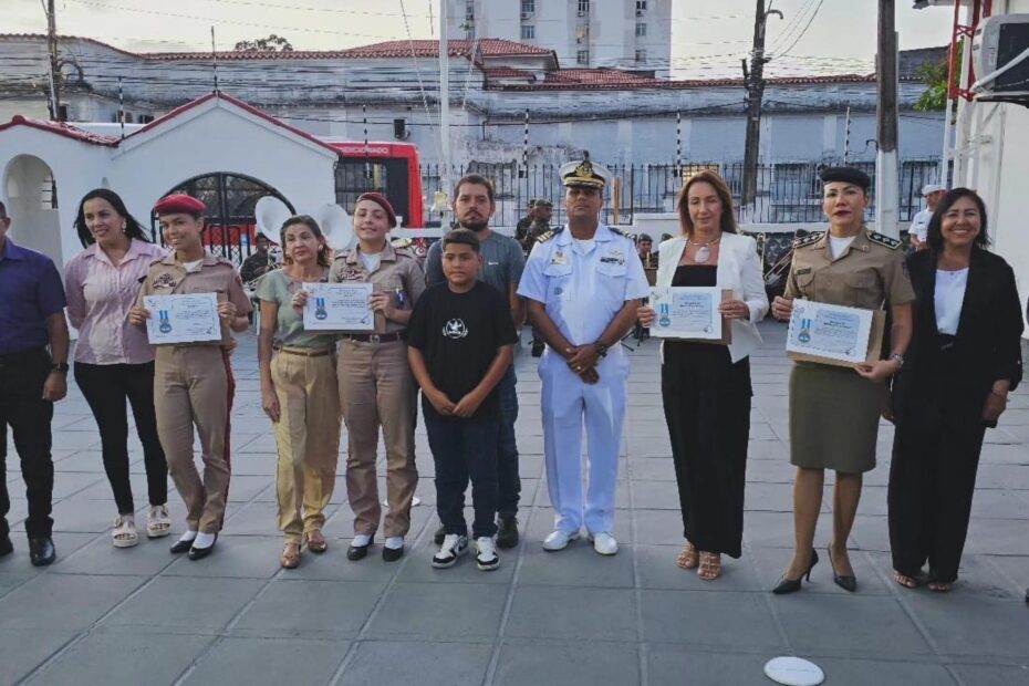 A cerimônia contou com a presença de representantes da gestão do colégio, incluindo a capitã Josineia, o sargento Alves e a diretora Helena Soares, que também receberam homenagens da instituição naval. O trabalho pedagógico de orientação aos alunos foi representado pelos professores Jorge e Ana Rebeca.
