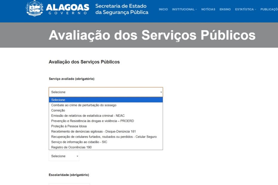 A Secretaria de Estado da Segurança Pública (SSP) de Alagoas disponibilizou um formulário para avaliar os serviços prestados pela pasta aos cidadãos. A avaliação faz parte da aplicação do modelo de governança e gestão pública coordenada e referendada pelos Governos de Alagoas e do Brasil, respectivamente.